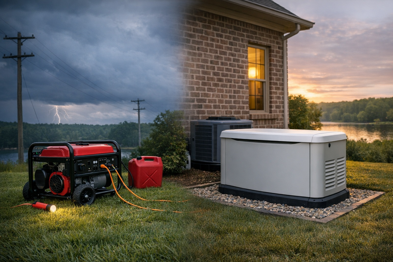 A portable generator is the more flexible and affordable option up front. You can buy one, store it when not in use, and bring it out when bad weather knocks out the power. For many homeowners, that makes it an attractive first step.