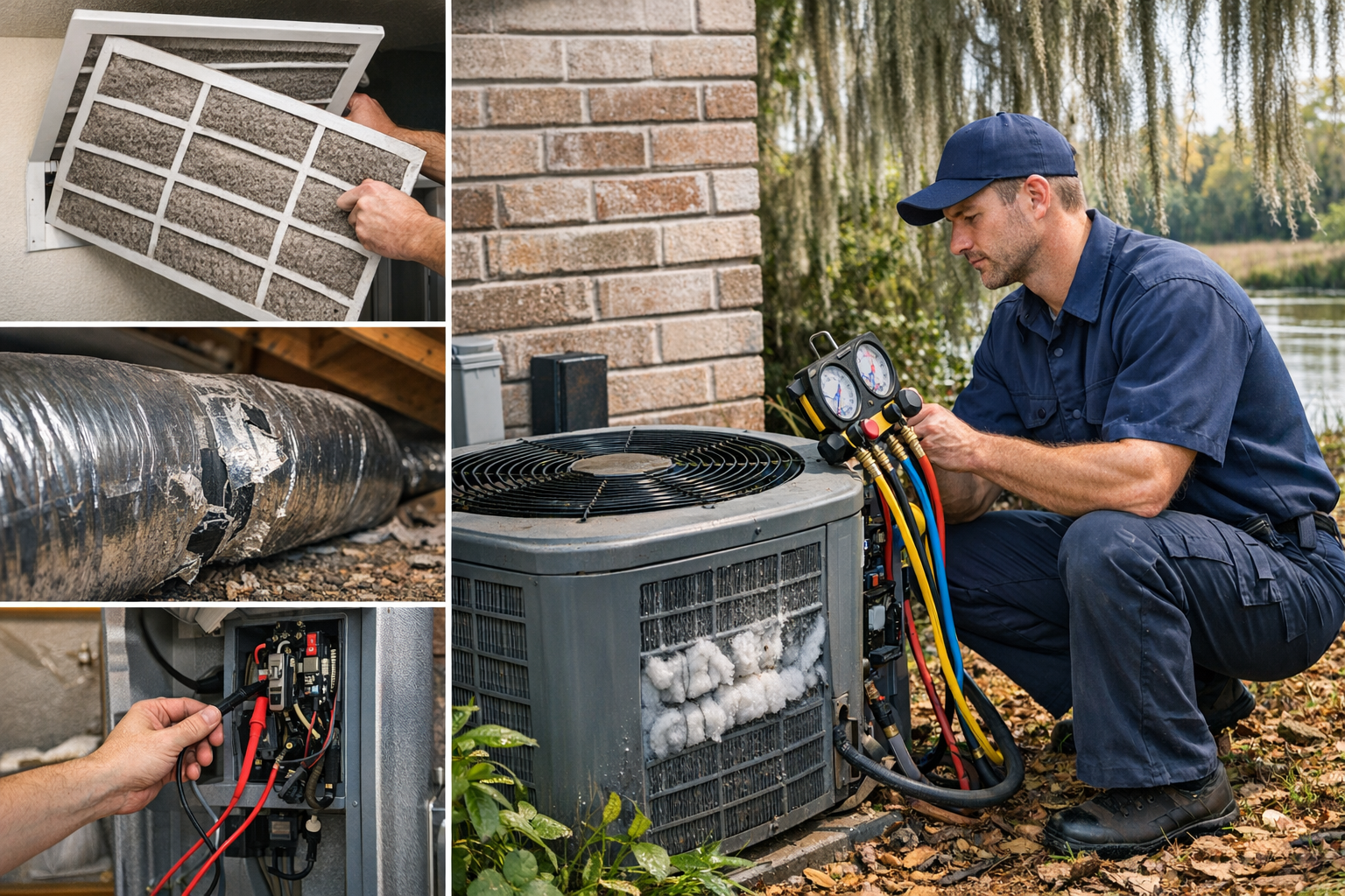 After storm season in Hardin County, it is common to see outdoor units surrounded by leaves, sticks, dirt, and even bent fins from windblown debris. Sometimes the unit looks fine from a distance, but once a technician checks it, the real problem becomes clear.